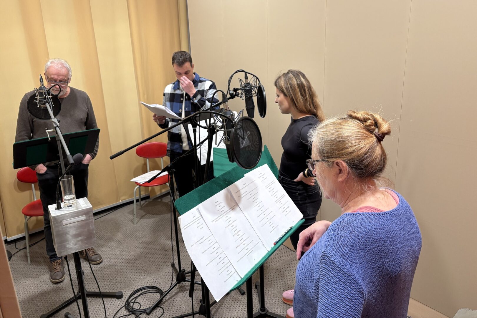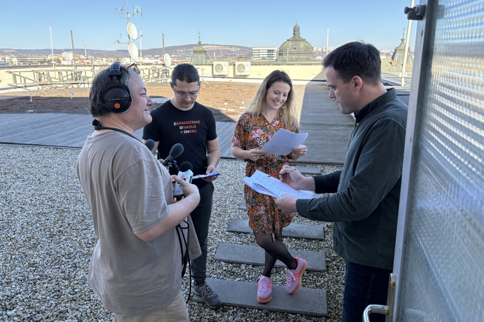 Ve studiích i na střeše Českého rozhlasu Brno se právě natáčí rozhlasová hra Pod povrchem, kterou v rámci semináře doc. Evy Schulzové napsala studentka 3. ročníku Monika Ostrovská. V režii Lukáše Kopeckého účinkují Barbora Goldmanová, Ondřej Kolín nebo držitelka Českého lva za film Přišla v noci Simona Peková.